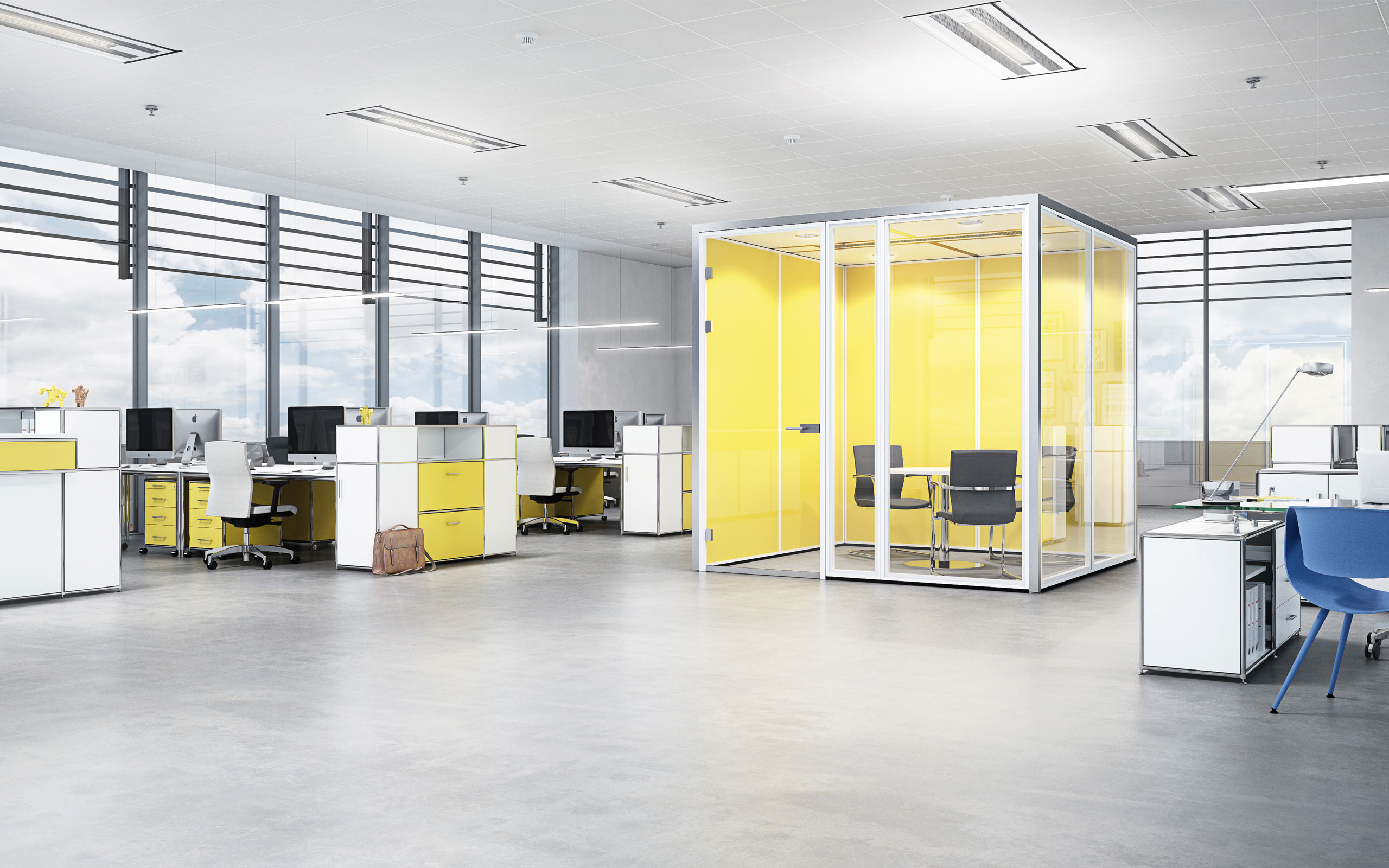 Auch in offenen Bürolandschaften werden nach wie vor Räume zum ungestörten Telefonieren, für vertrauliche Kommunikation, konzentrierte Gruppenarbeit und ungestörte Meetings benötigt.