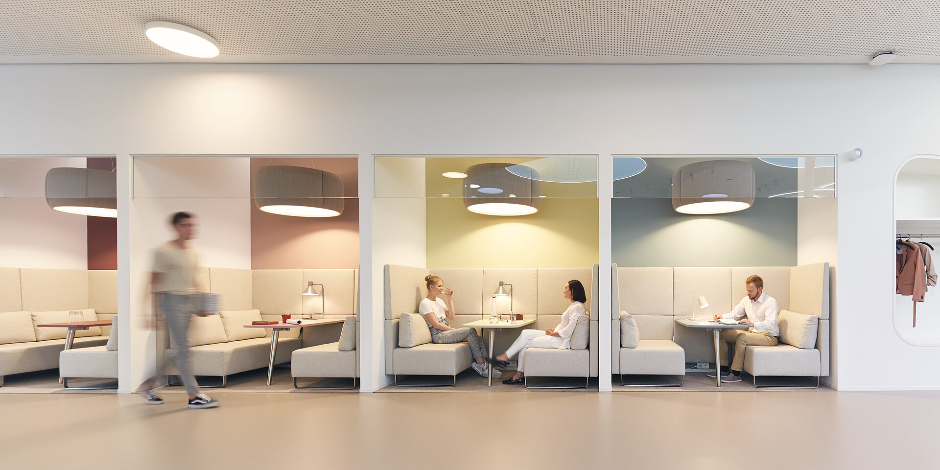 Diese Zonen sind auch der ideale Ort für Besprechungen und spontanen Austausch mit Kollegen.