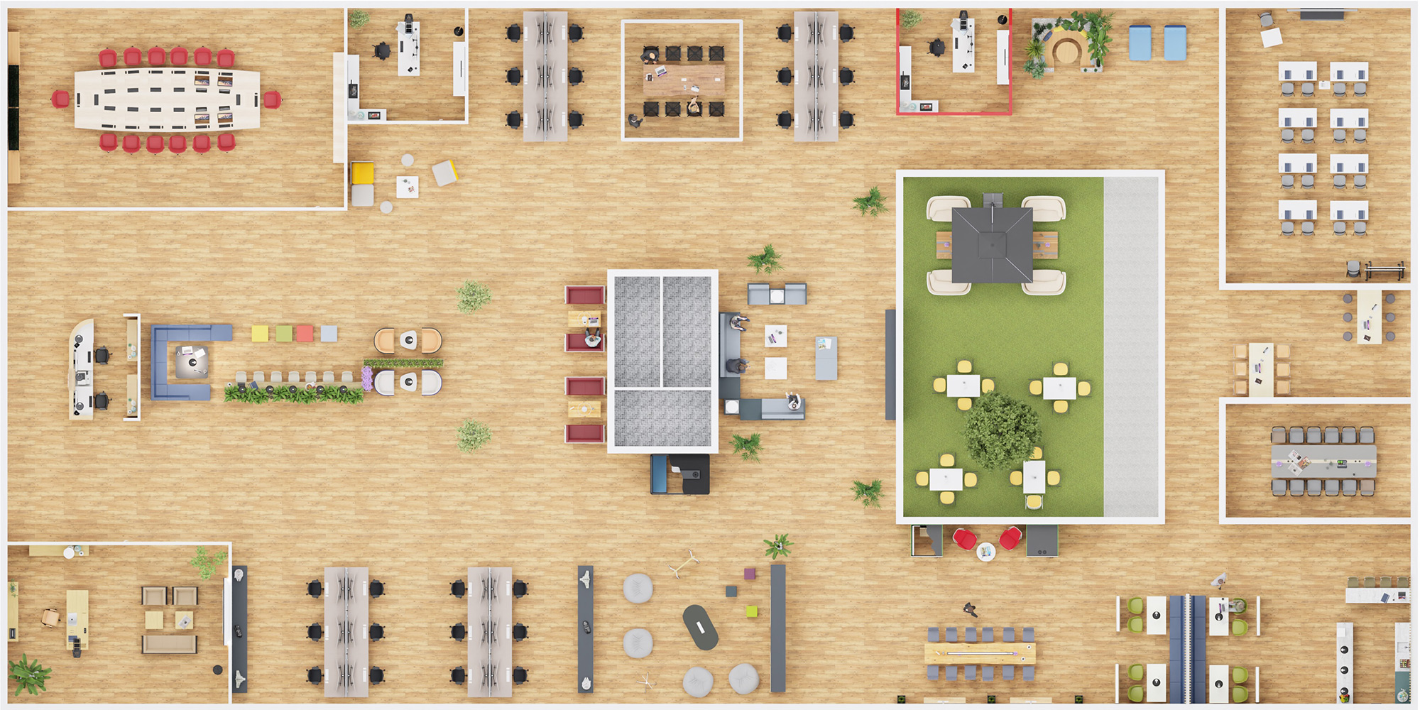 Bereiche für konzentriertes Arbeiten, für Teamarbeit, Gedankenaustausch und Entspannung lösen die bisher gekannte Aufteilung nach Abteilungen ab.