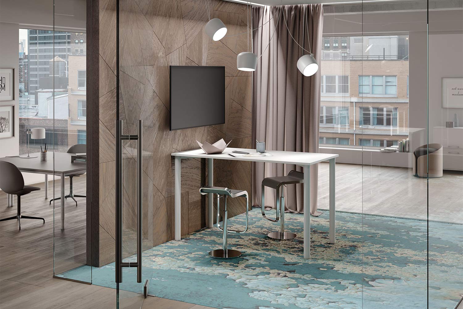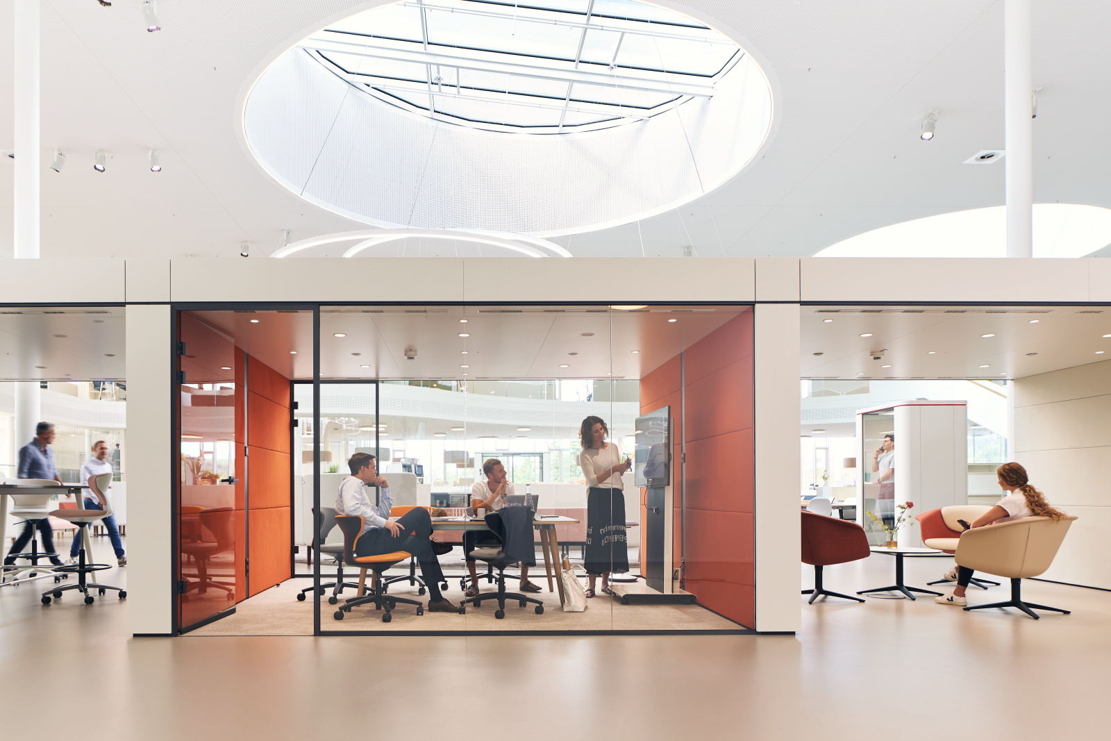 Auch in offenen Bürolandschaften werden nach wie vor Räume zum ungestörten Telefonieren, für vertrauliche Kommunikation, konzentrierte Gruppenarbeit und ungestörte Meetings benötigt.