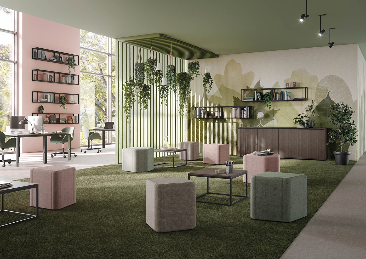 Diese Zonen sind auch der ideale Ort für Besprechungen und spontanen Austausch mit Kollegen.