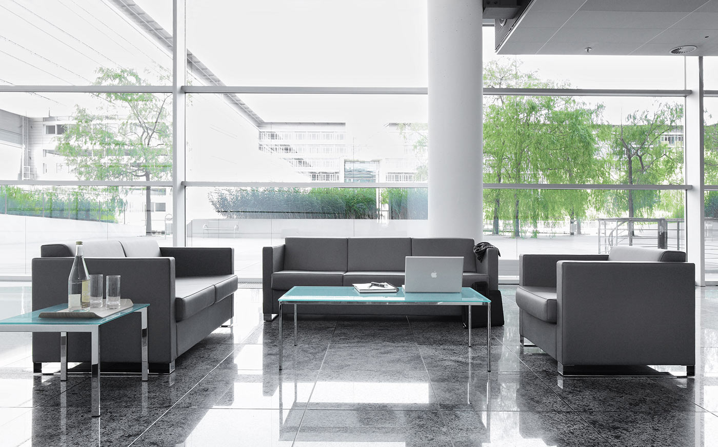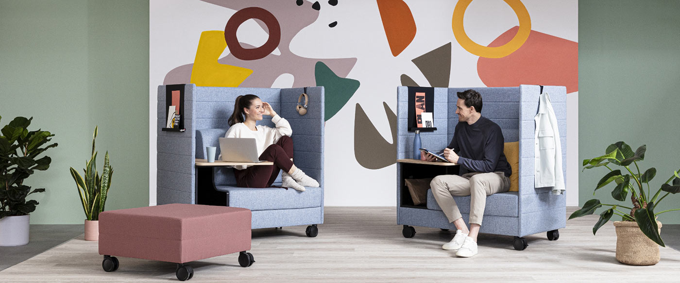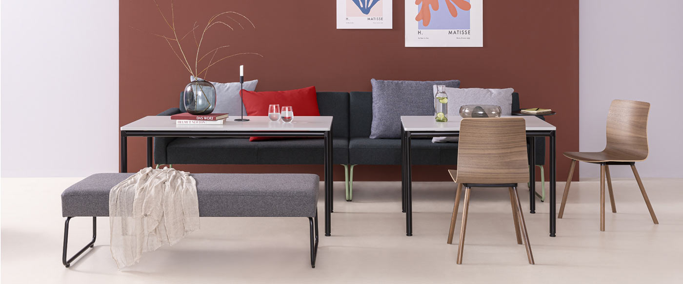 Wohnliche Möbel wie zum Beispiel Sofas vermitteln dabei Komfort und Wohlgefühl abseits der klassischen Arbeitsplatzsituation.